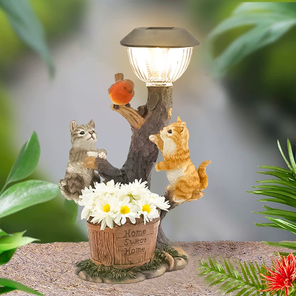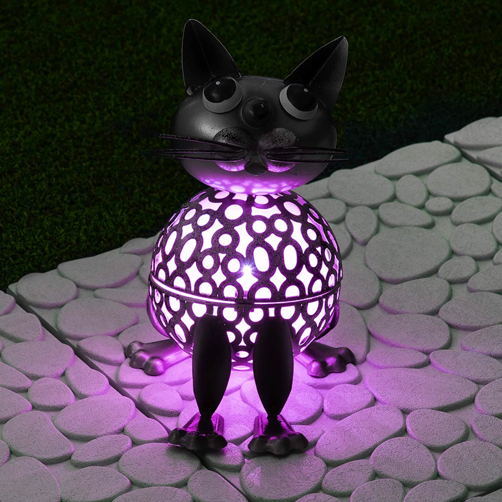 The following ornaments feature charming cat designs that light up with solar-powered LED lights at night, adding a magical touch to your garden after dark. Whether you're a cat lover or simply enjoy whimsical garden decor, these solar-powered cat garden ornaments are sure to delight you and your guests.