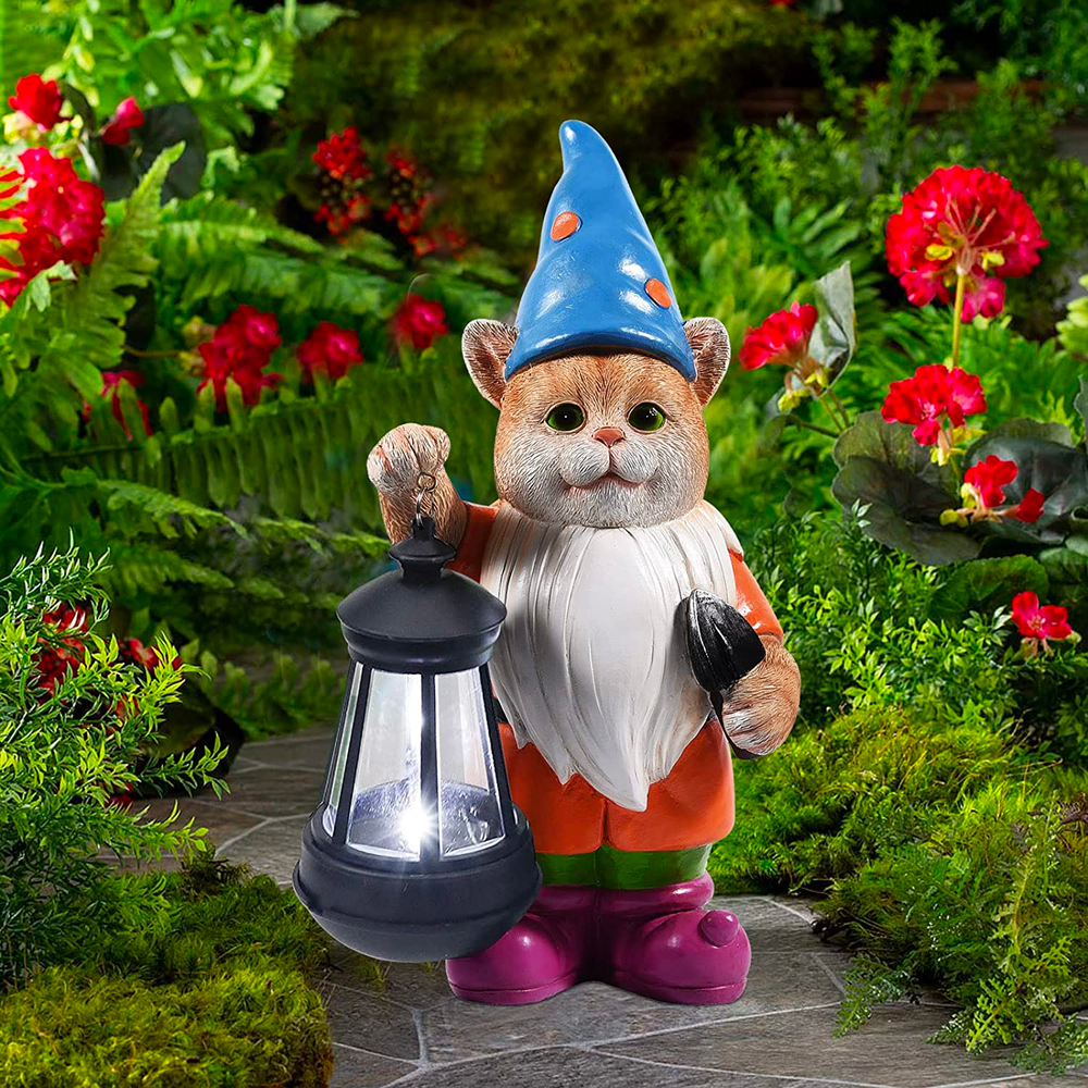 Bring a touch of whimsical charm to your lawn or table with the Solar Powered Cat Garden Gnome. This vivid cat with a lantern is exploring and is sure to bring a better sense of design to your home.